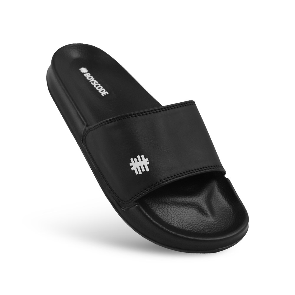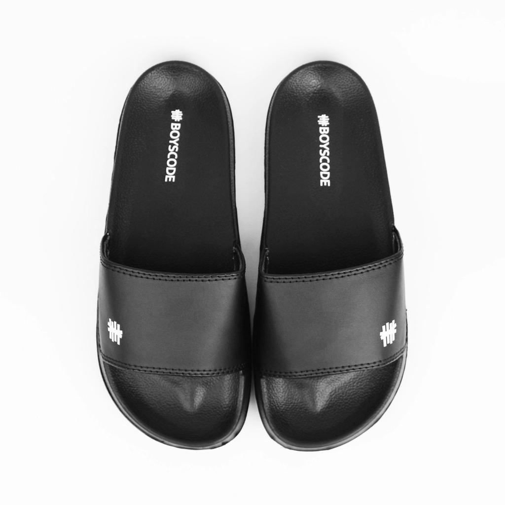 BOYSCODE Sendal Selop Distro Pria Wanita Original Petir Logo Hitam Putih / Slop Pria / Slip On Pria