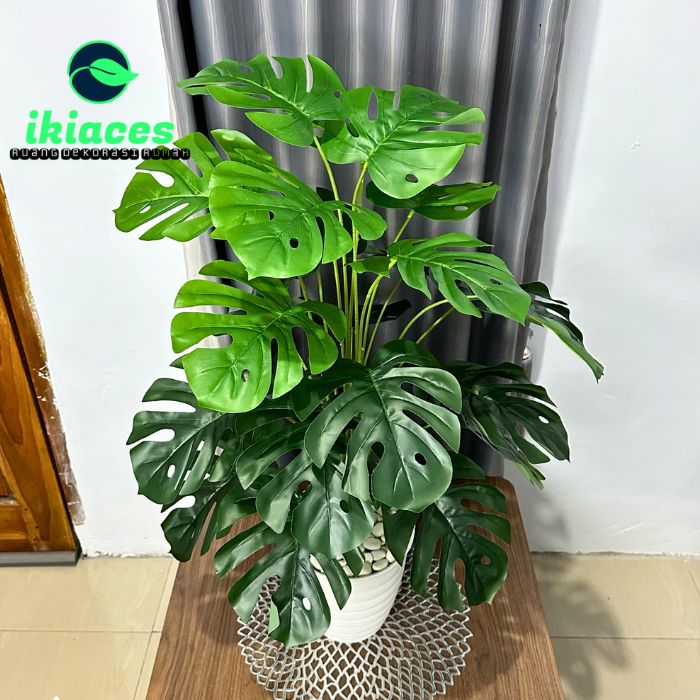 BUNGA HIAS SUDUT RUMAH 1 METER DAUN MONSTERA JUMBO DAUN ARTIFICIAL PLASTIK