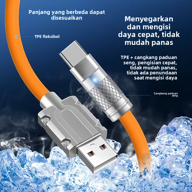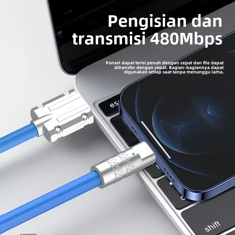 RCCOR KABEL DATA 120W SILICONE + INDIKATOR LED & TYPE-C/LIGHTNING/MICRO | PRAKTIS & AWET