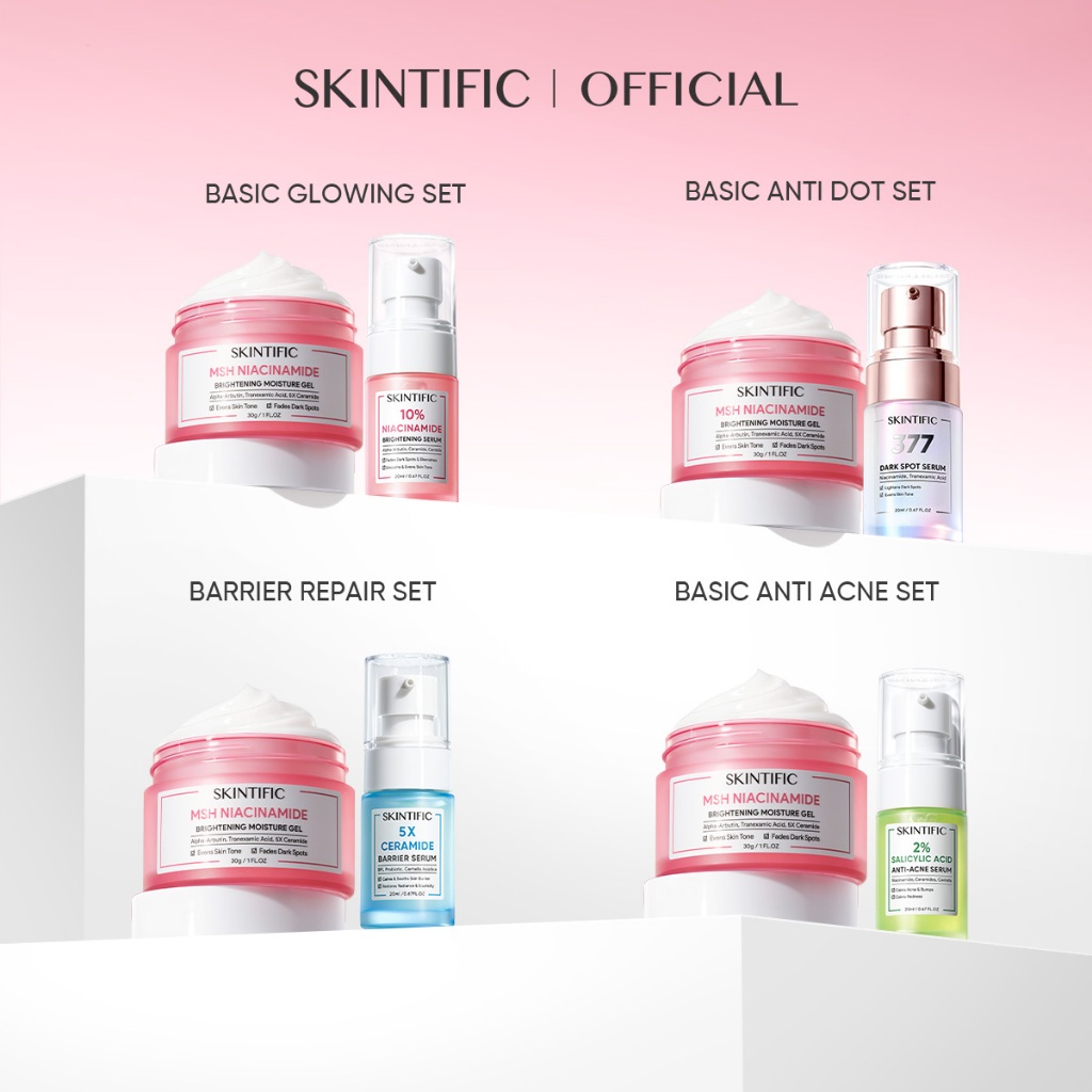 SKINTIFIC - 2pcs Paket Basic Skincare Set | MSH Niacinamide Glowing 377 Dark Spot Salicylic Acid Acne Treatment 5X Ceramide Barrier Calming Serum Brightening Moisturizer Deep Moisture Combo