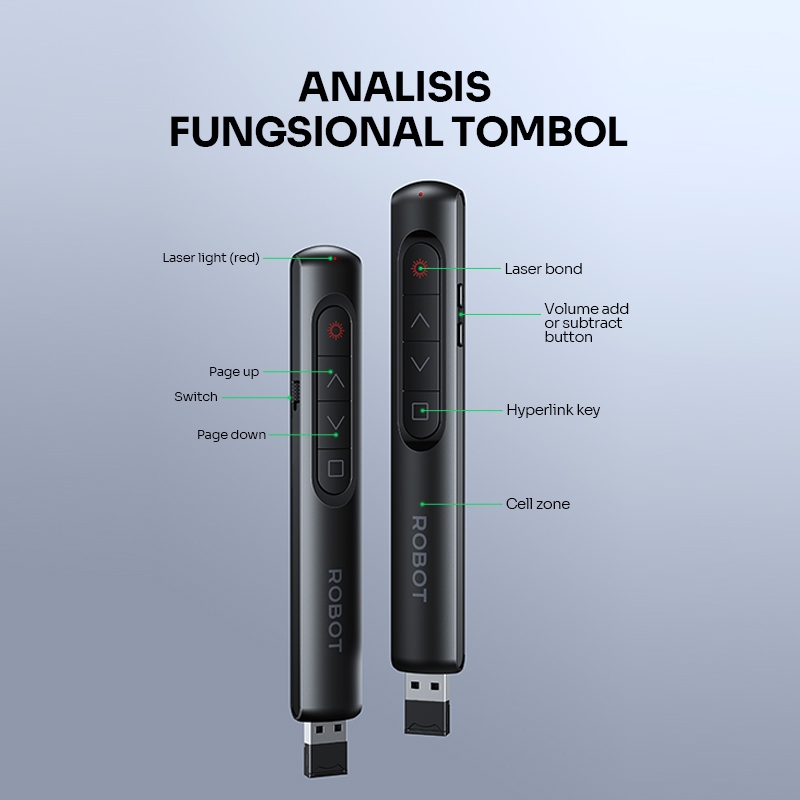 ROBOT Pena Laser 100 Meter Hyperlink Remote Pointer Presentasi Wireless Laser Merah Pen Laser Penunjuk Proyektor Original Tipe RLP01 Original - Garansi 1 Tahun
