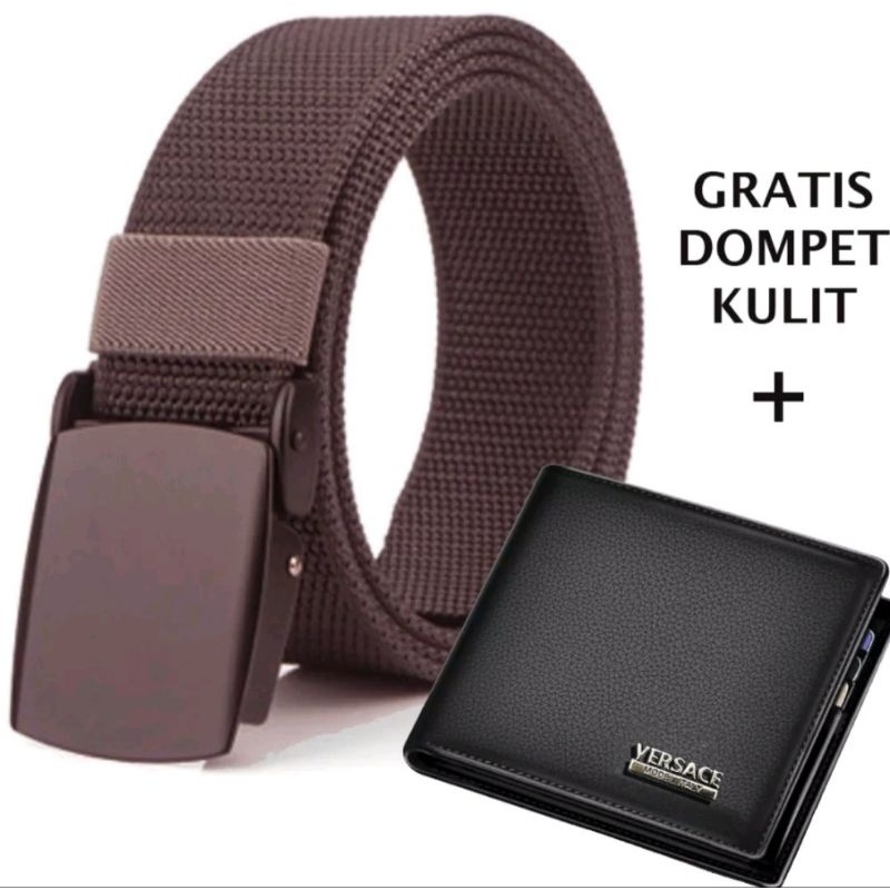 ikat pinggang pria BONUS DOMPET KULIT panjang 125cm gesper pria kerja dan Sekolah