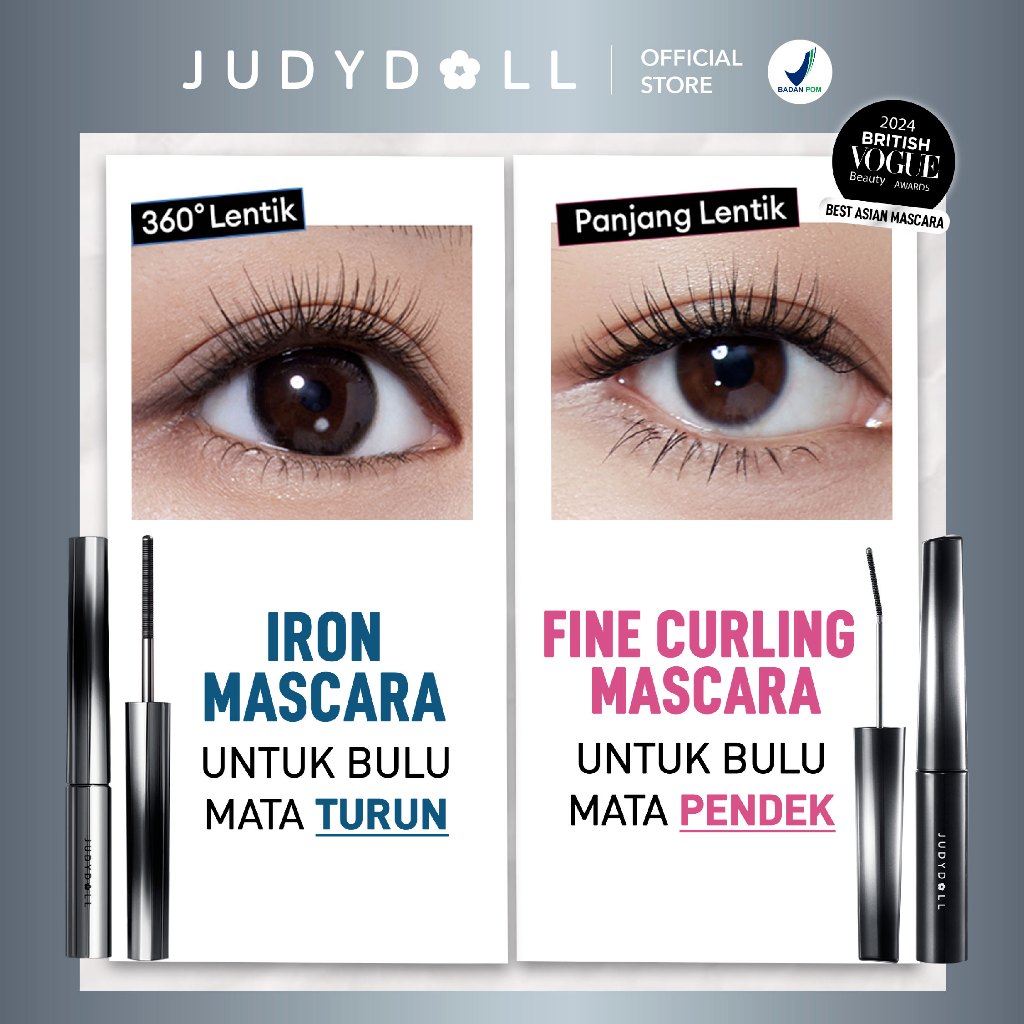 (BEST SELLER) Judydoll Fine Curling Iron Mascara (Maskara Besi Waterproof, Smudgeproof, Anti Clumpy, Hasil Lentik Natural Tahan Lama 12 Jam)