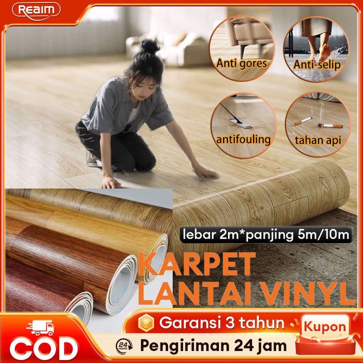 Reaim Karpet Lantai Vinyl Gulungan Motif Kayu ketebalan 1mm /Ukuran 5m/10m | 2 Meter