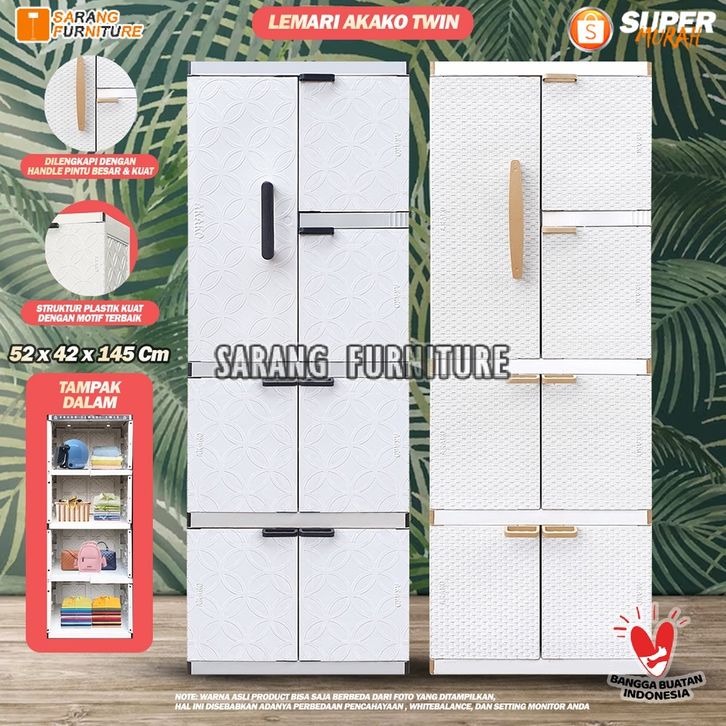 Lemari Pakaian Plastik Akako Twin Jumbo Putih | Kabinet Minimalis Dengan Kaca Premium