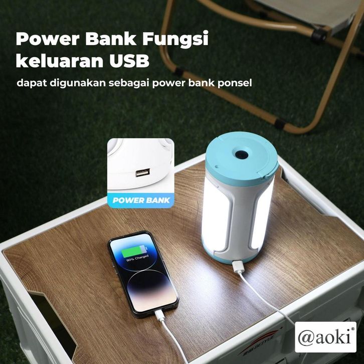 AOKI Lampu Camping 4800mAh Powerbank - USB Type-C, Multifungsi & Gantung, Desain Modern Stylish