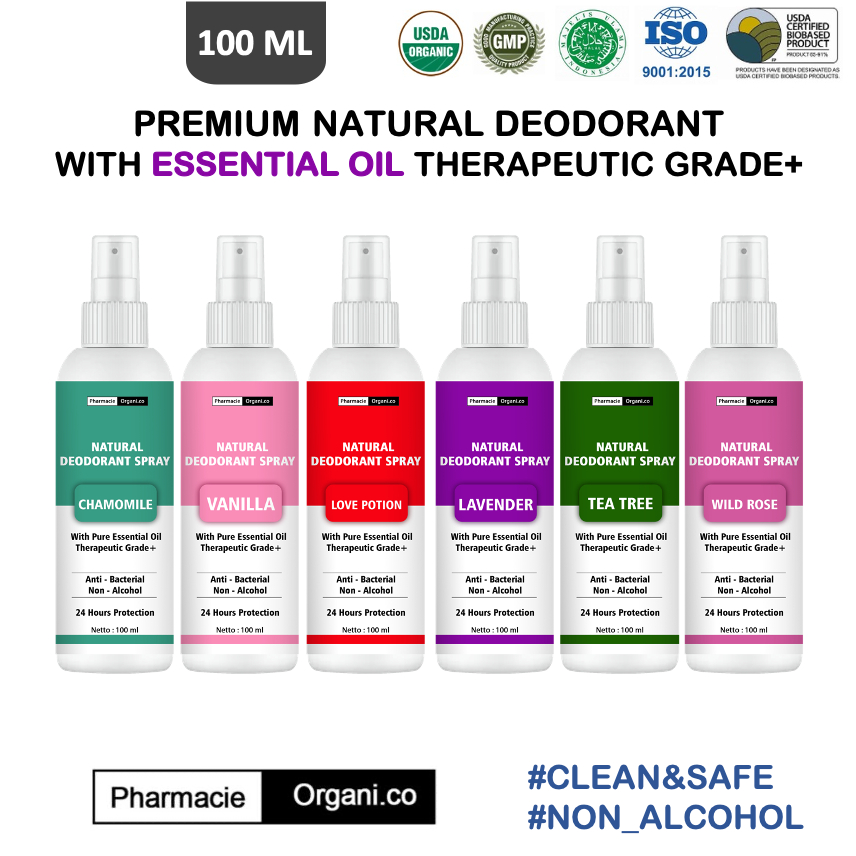 NATURAL DEODORANT TAWAS SPRAY WITH ESSENTIAL OIL PENGHILANG BAU BADAN THERAPEUTIC GRADE+ ORGANIC BY PHARMACIE ORGANICO