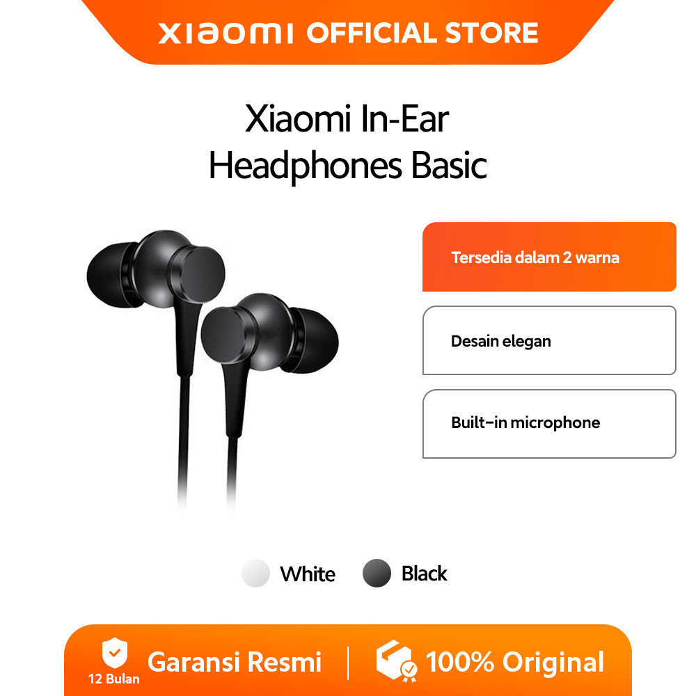 Xiaomi In-Ear Headphones Basic | Built-in Microphone | Desain elegan | Earphone | Headset [ Official Store ]