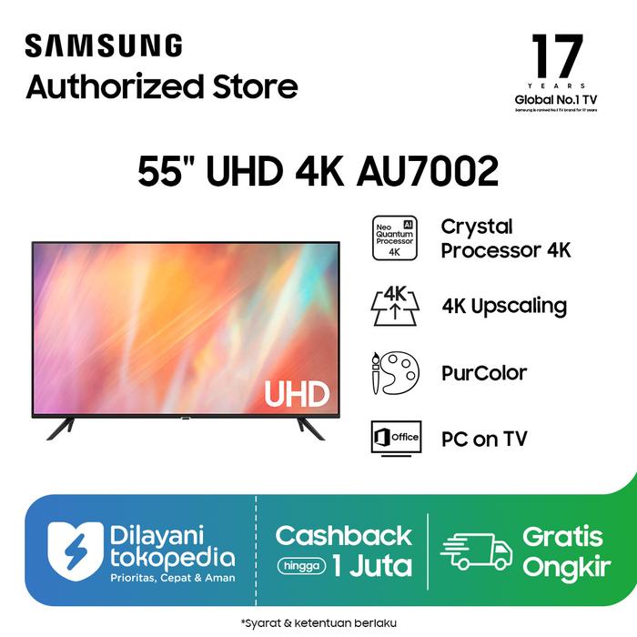 SAMSUNG SMART TV 55 INCH UHD 4K AU7002 DENGAN PURCOLOR UA55AU7002KXXD
