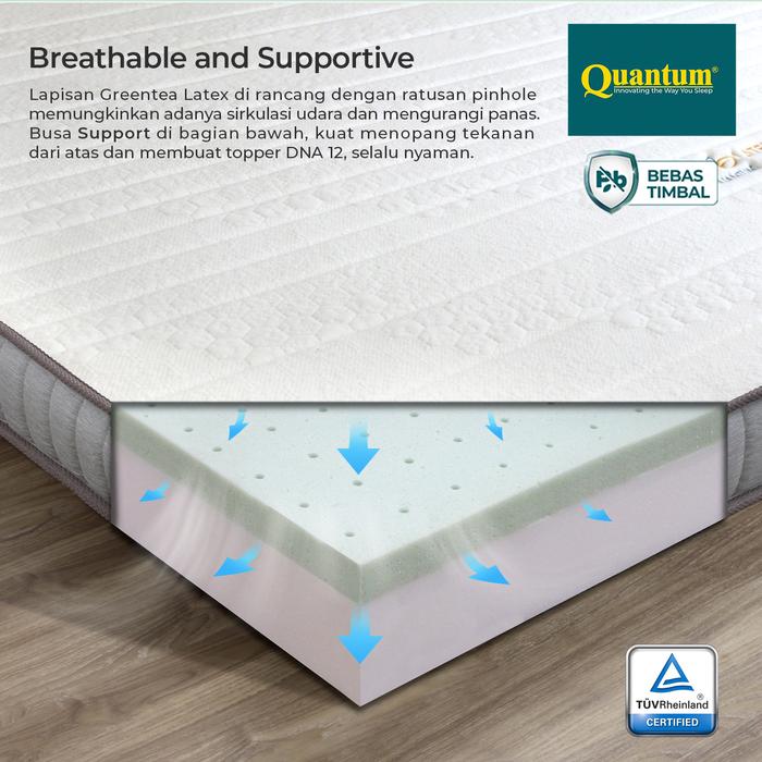 Topper Kasur Quantum Dna 12Cm Greentea Latex | Ergonomis & Bebas Timbal - 90 X 200