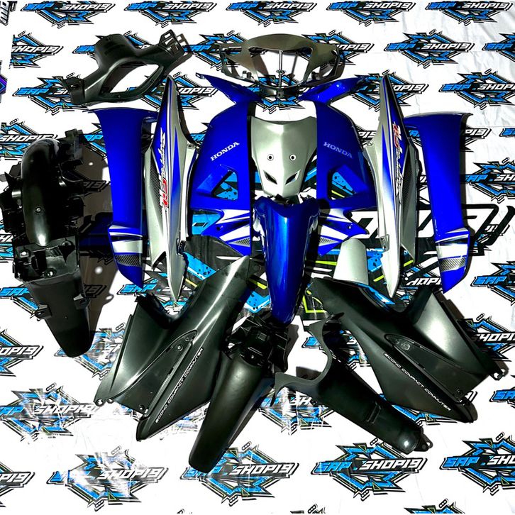 Full Set Full Cover Body Halus dan Kasar Motor Honda Supra Fit New Biru Silver. Terlaris / Termurah