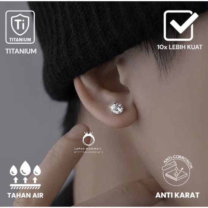 Anting Magnet Batu Berlian Permata Bahan TITANIUM Anti Karat Pria Wanita