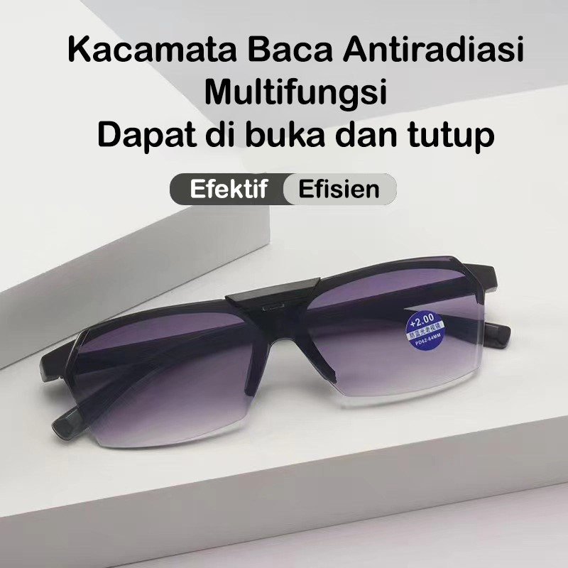 Kacamata Baca Multifungsi Buka dan Tutup Lensa Plus Anti Radiasi +1.00 s/d + 4.00 Kacamata Pria Reading Glasses Buka 8010 Original Indoberkah88 Lensa
