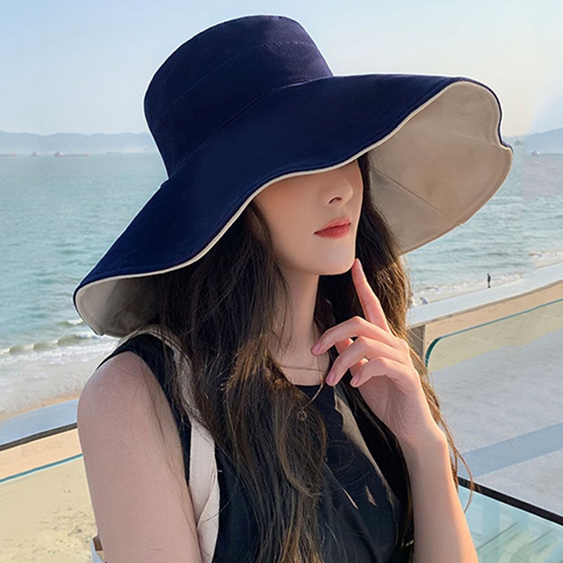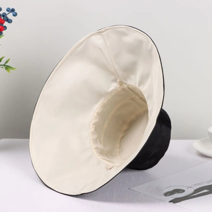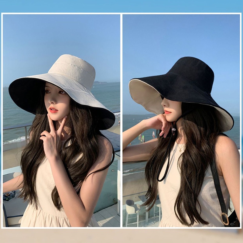 Topi Pantai Wanita Korea Lebar Dua Warna Visor Pelindung Sinar UV Summer Bucket Hat Fashion Trendy