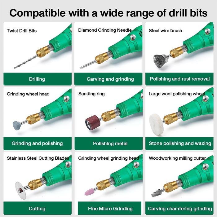 Set Bor Listrik Mini dengan Kabel 12V DC Alat Listrik untuk Pemolesan Pemotongan dan Penggilingan - Set Hijau