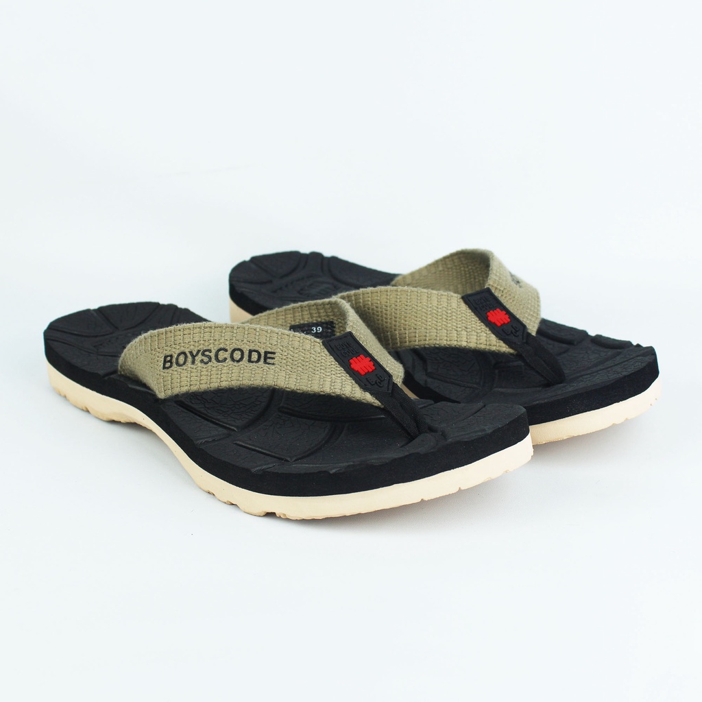 BOYSCODE Sendal Jepit Gunung Outdoor Casual Pria Wanita Authentic Hitam Cream / Sendal Santai Pria
