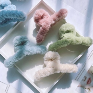 JR-A001 Jepitan RambutJedai Wanita Bahan Bulu Lembut Gaya Korea Warna Soft Aksesoris Rambut