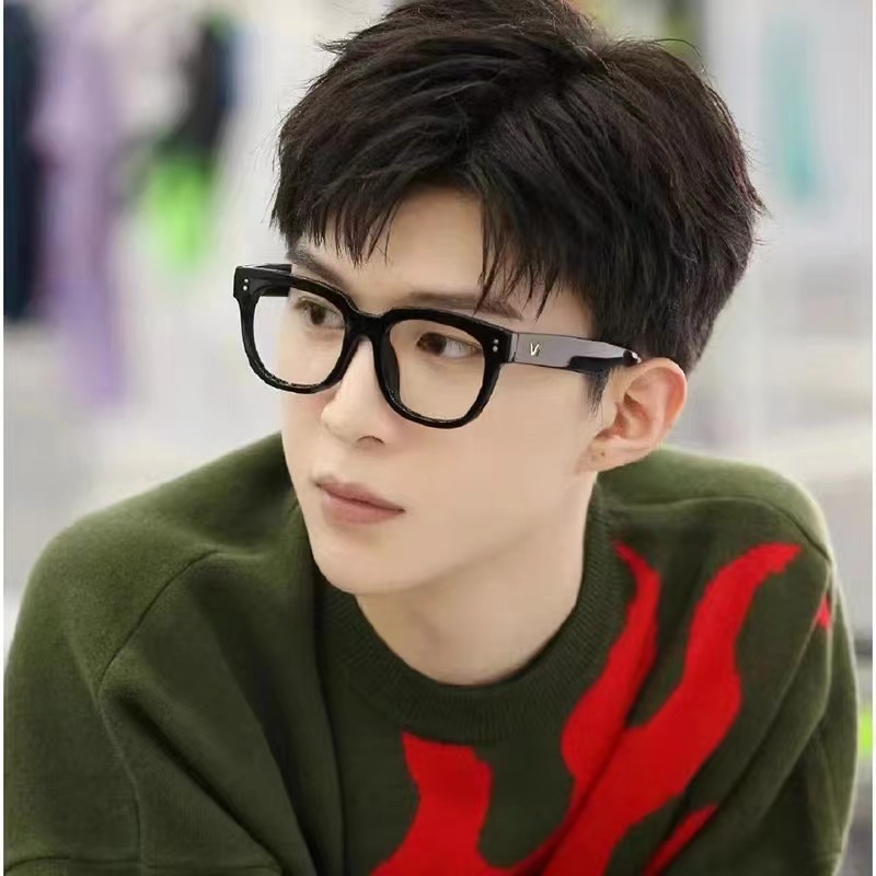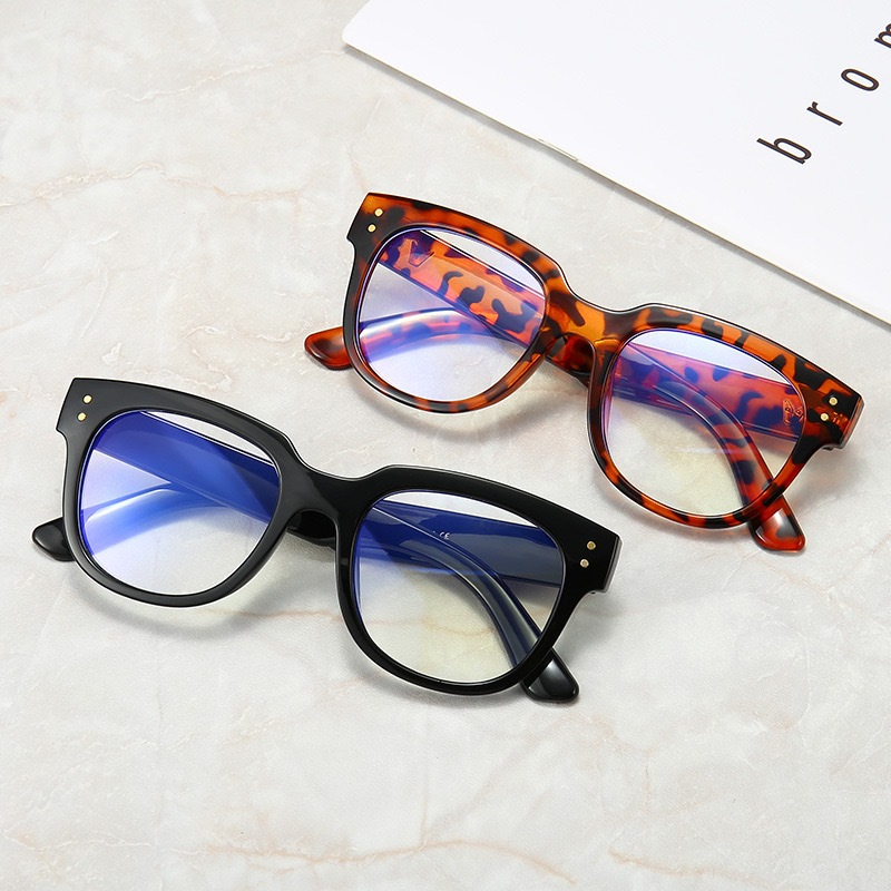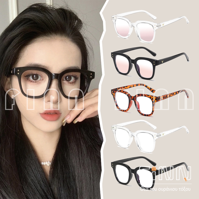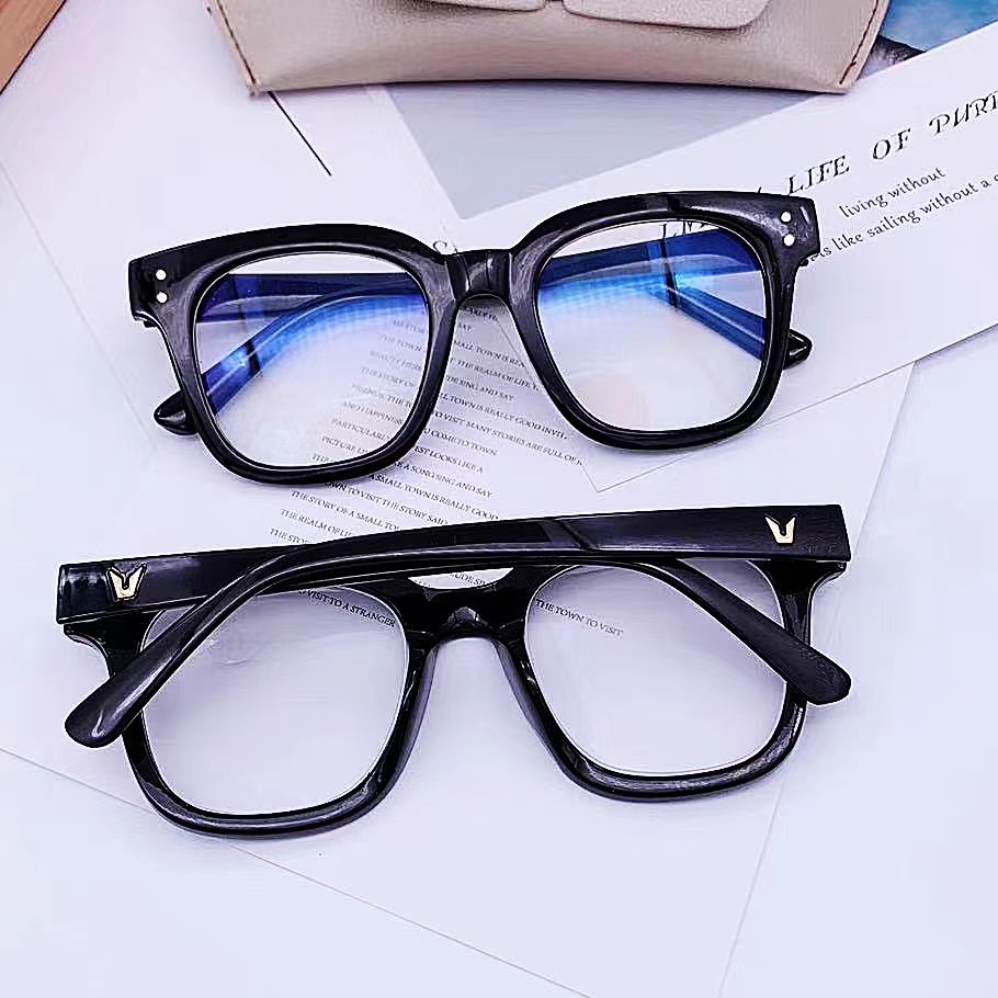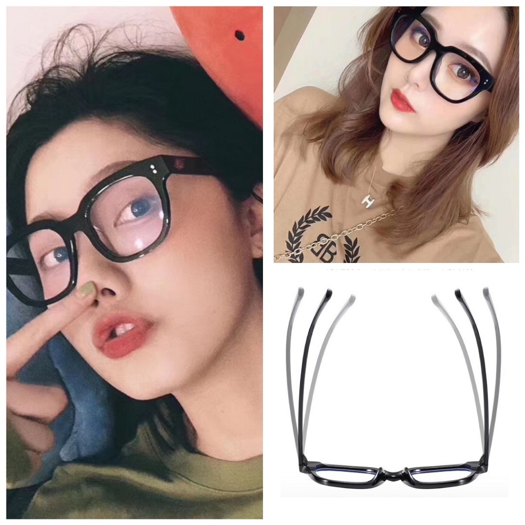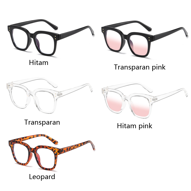 Kacamata Unisex Frame Kotak Lensa Bening Anti Uv Aksen Dua Titik Square Eyeglasses Accessoriess Fashion