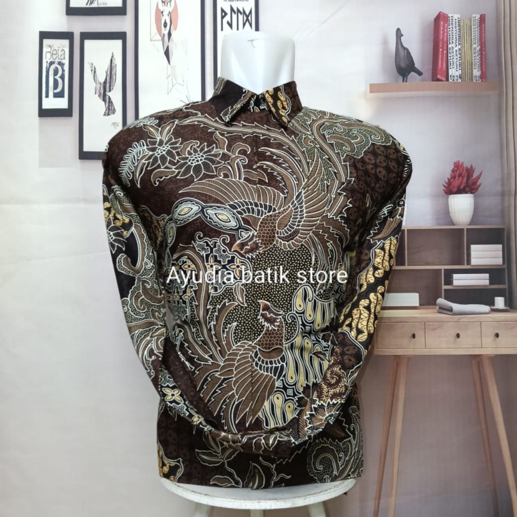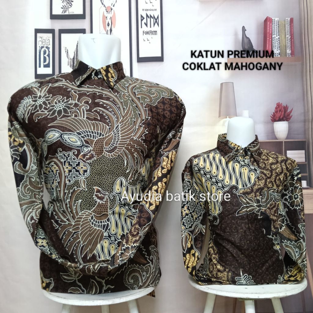 Batik coklat mahogany, couple kemeja batik ayah dan anak bahan katun premium lengan panjang