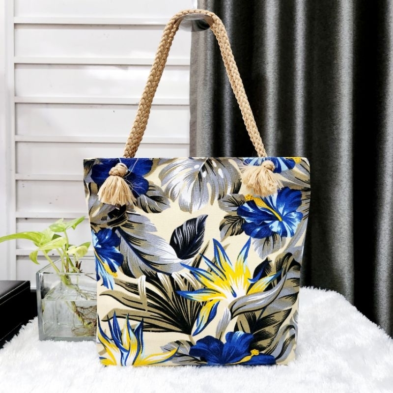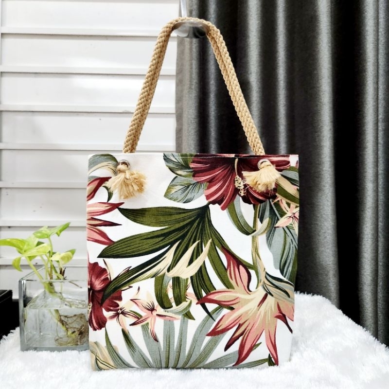 Handbag Kanvas Kecil Motif Tali Sumbu mini Tas Mukena Tas Tote tali sumbu mini