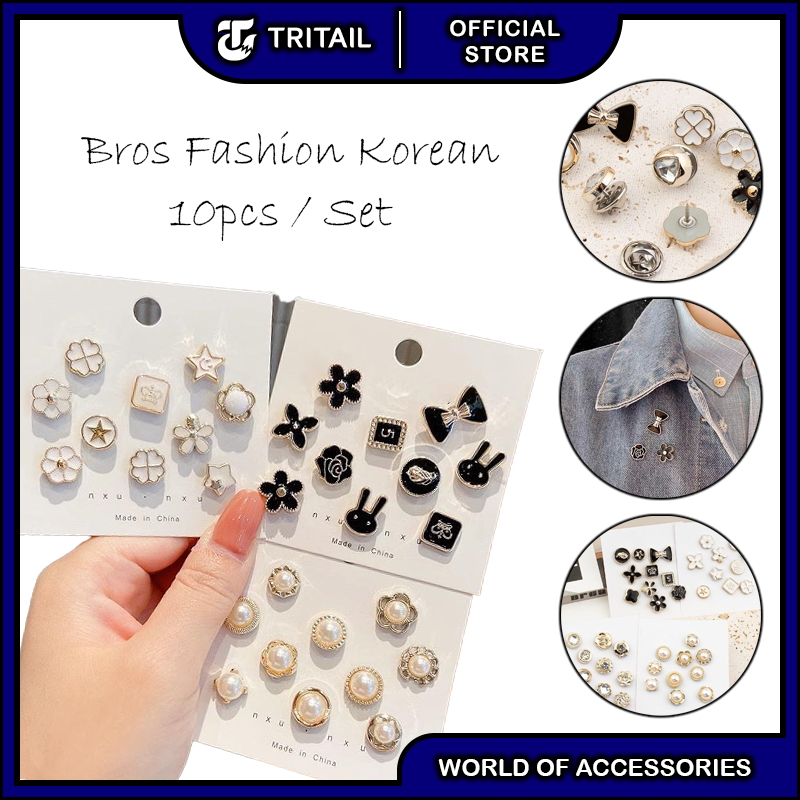 Tritail - 10pcs / Set Bros Pin Hijab Fashion Wanita Model Invisible Tanpa Kancing Dapat Dilepas
