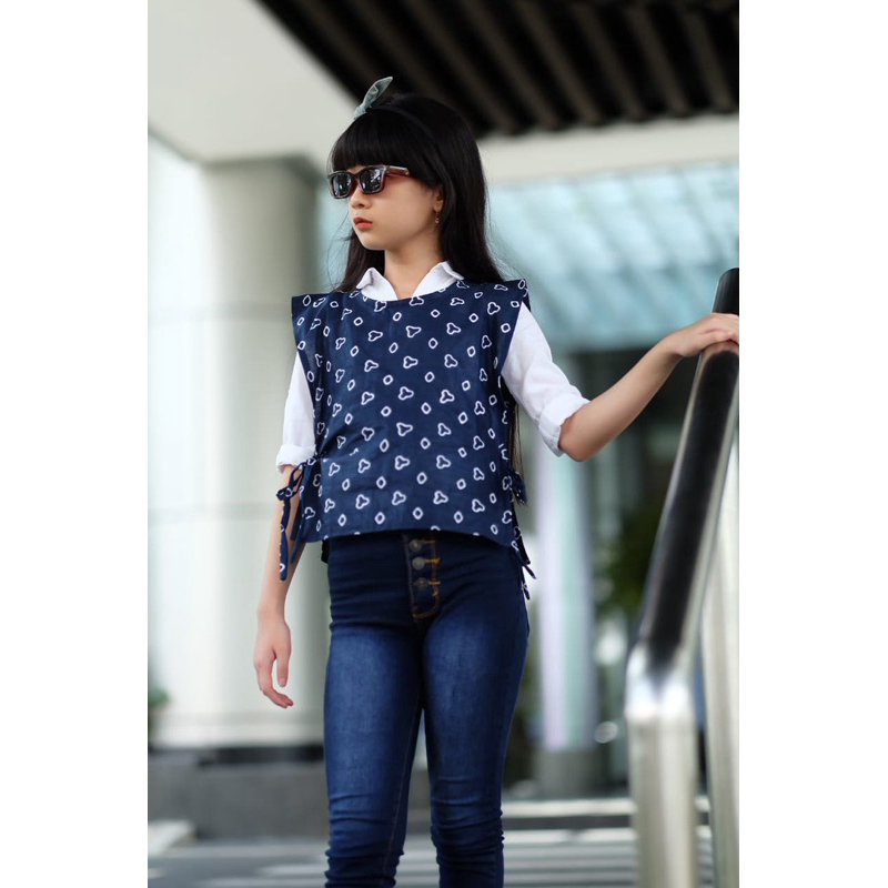 BATIK KIDS VEST BATIK ANAK JUMPUTAN OUTER BAHAN KATUN DAN RAYON BATIK ANAK MOUSE ROMPI BATIK ANAK SEKOLAH CANTIK BIRU ME