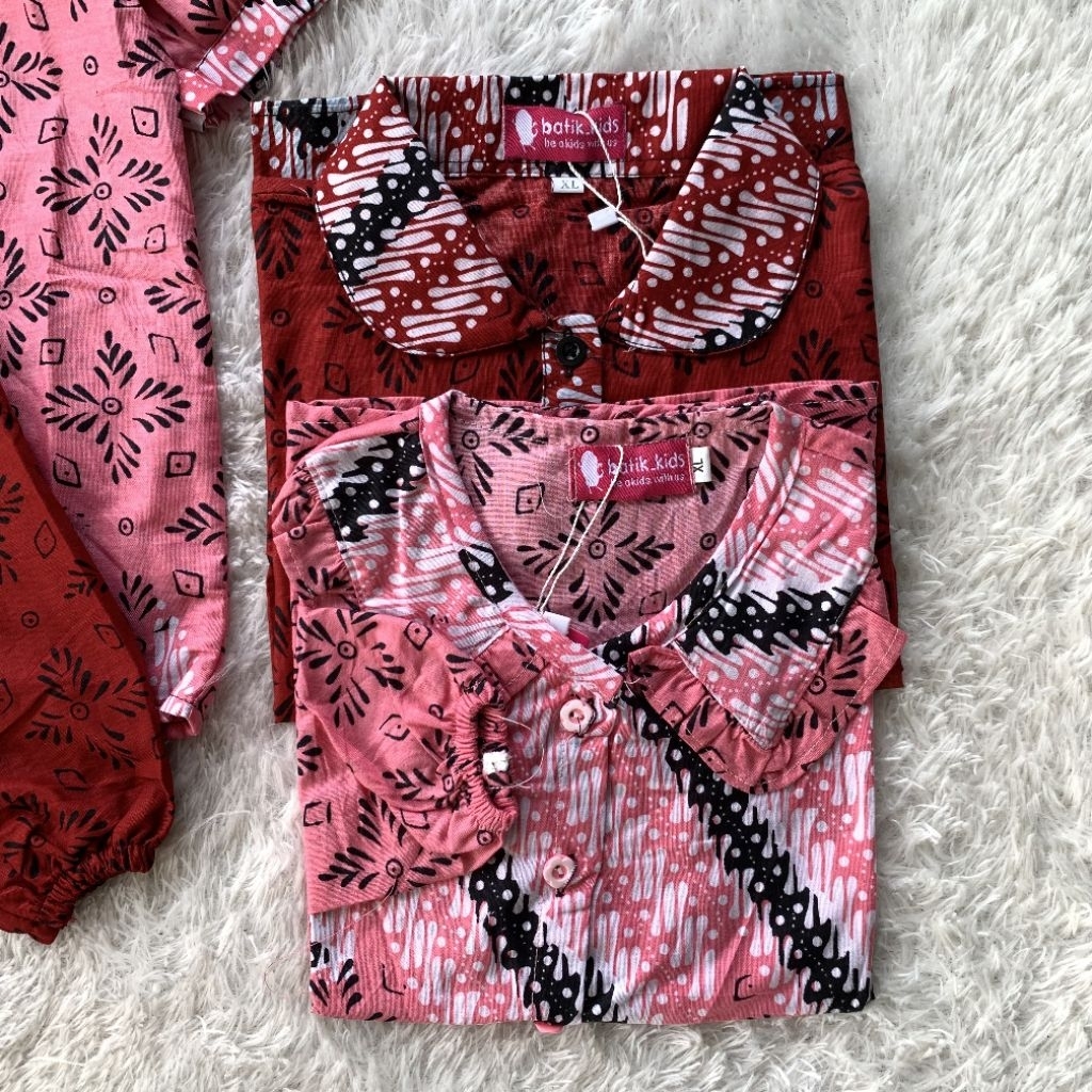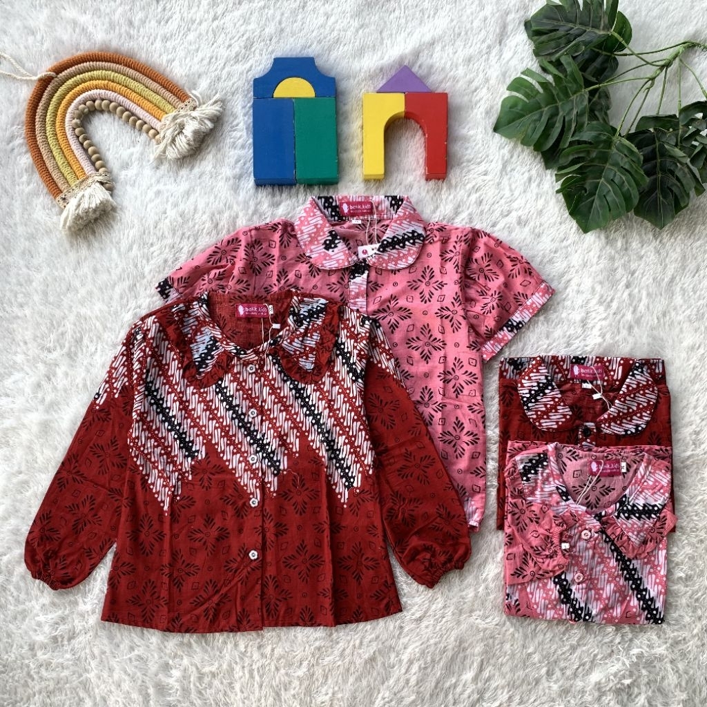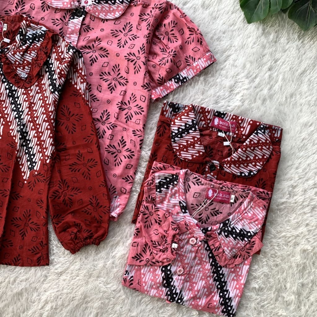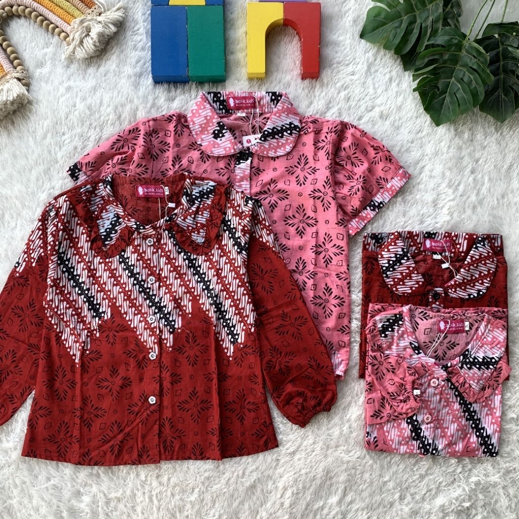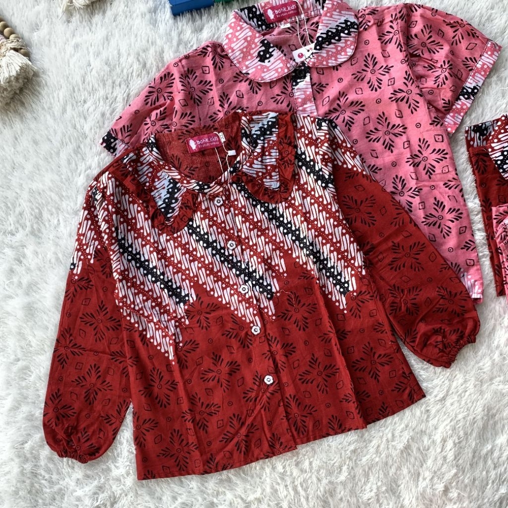 Esther Blus Top Atasan Batik Anak Khaira Kerah Ruffle Bulat Merah Pink Lengan Panjang Pendek Sekolah