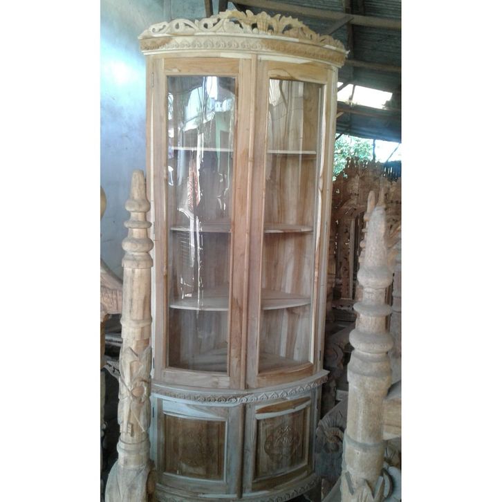 Lemari sudut jati/almari sudut kayu jati lemari hiasan ruang tamu lemari hias ruang tamu murah Best seller terlaris