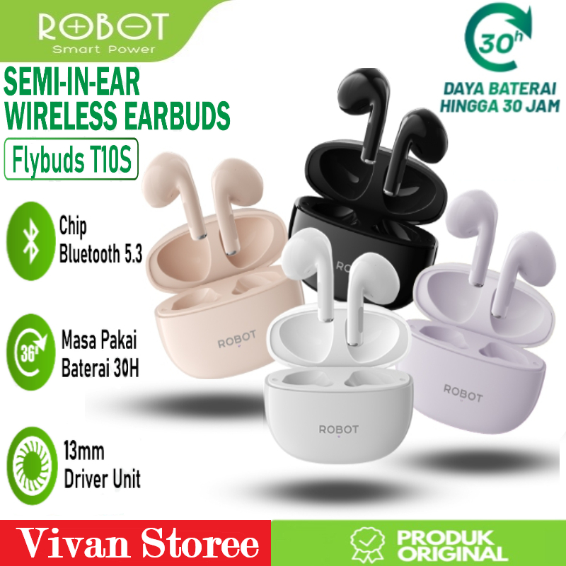 ROBOT TWS Flybuds T10S Wireless Headset Bluetooth 5.3 Earphone Waterproof IPX4 Semi In Ear Garansi