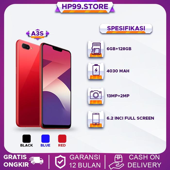 Hp Smartphone A3S Ram 6/128Gb 6.2 Inci 4G Lte - Merah, 6/128