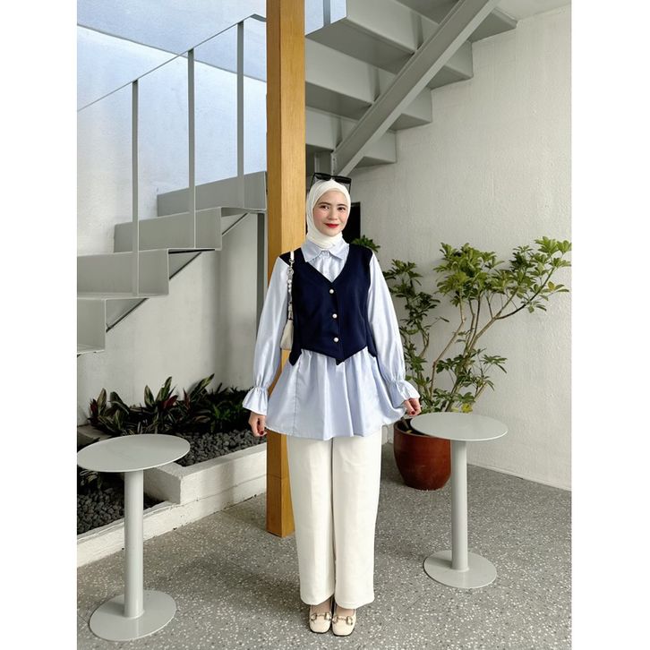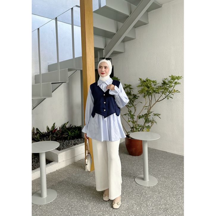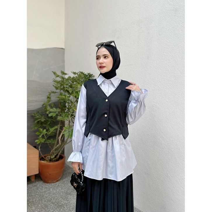 AZURA Blouse | Atasan Wanita Premium, Fashion Muslim Korea Style ( 2 SIZE, 3 WARNA, bahan Scuba Bonnie kombinasi