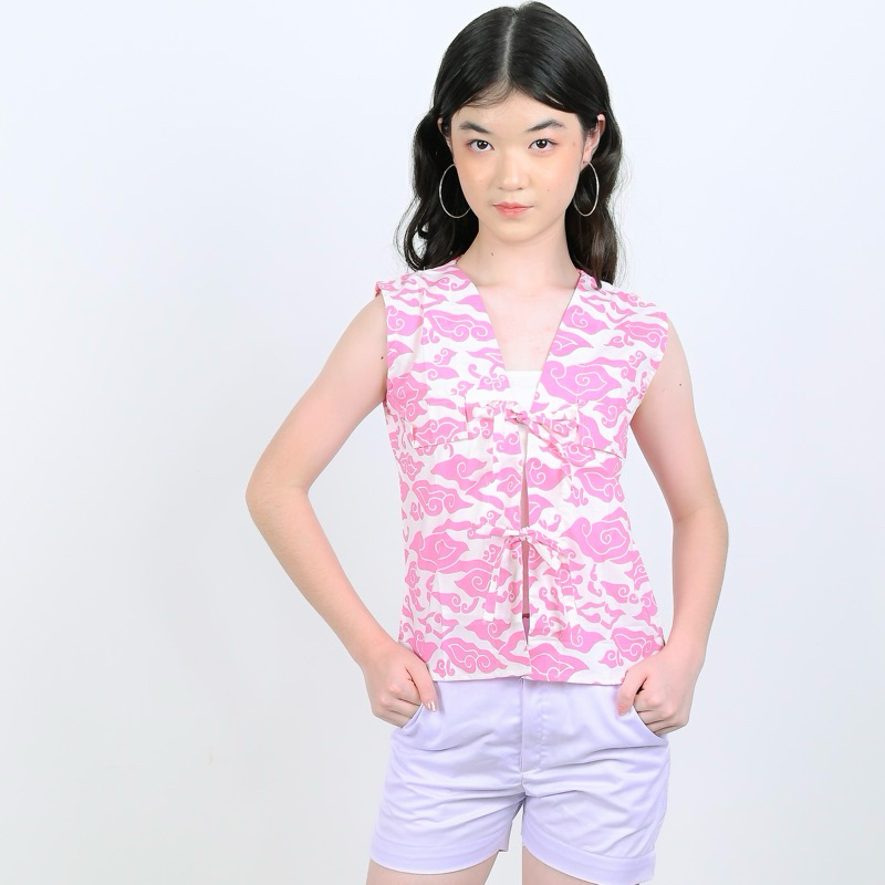 Batik Kids New Outer Vest Rompi Batik Megamendung Bertali Sage Ungu Pink Maroon Coksu