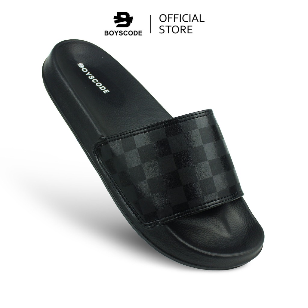 BOYSCODE Sendal Selop Distro Pria Footwear Original Catur Checkerboard Hitam / Sendal Slip On / Sendal Slop / Sendal Slide