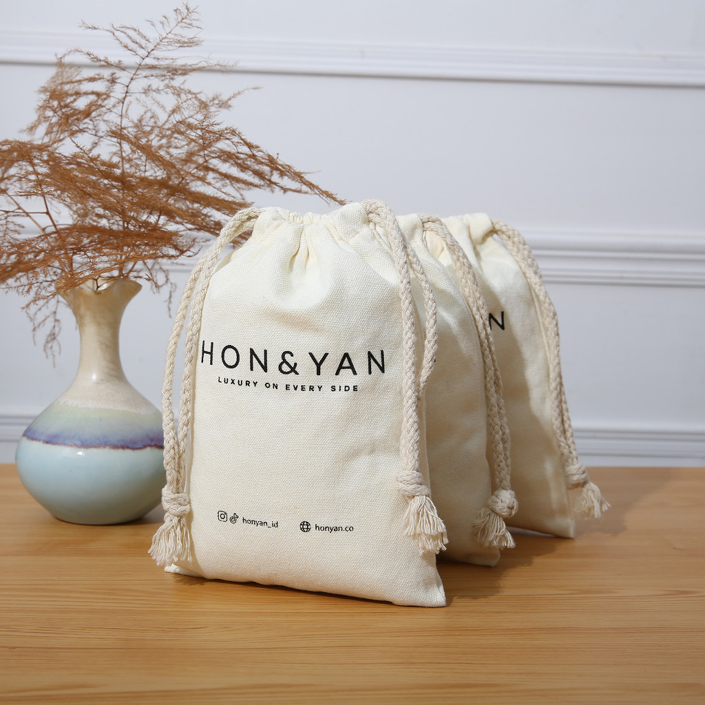 HONYAN Tas Serut Kecil Tas Canvas Branded Ori Kantong Perhiasan Makeup Travel Organizer String Bag