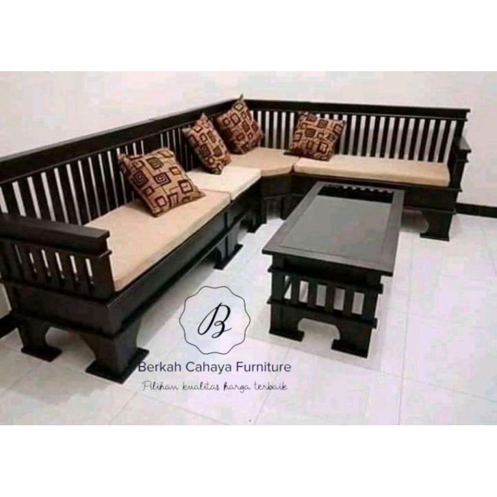 kursi ruang tamu Kursi tamu sofa sudut jari2 kayu jati free kaca meja kursi kayu jati Best seller terlaris