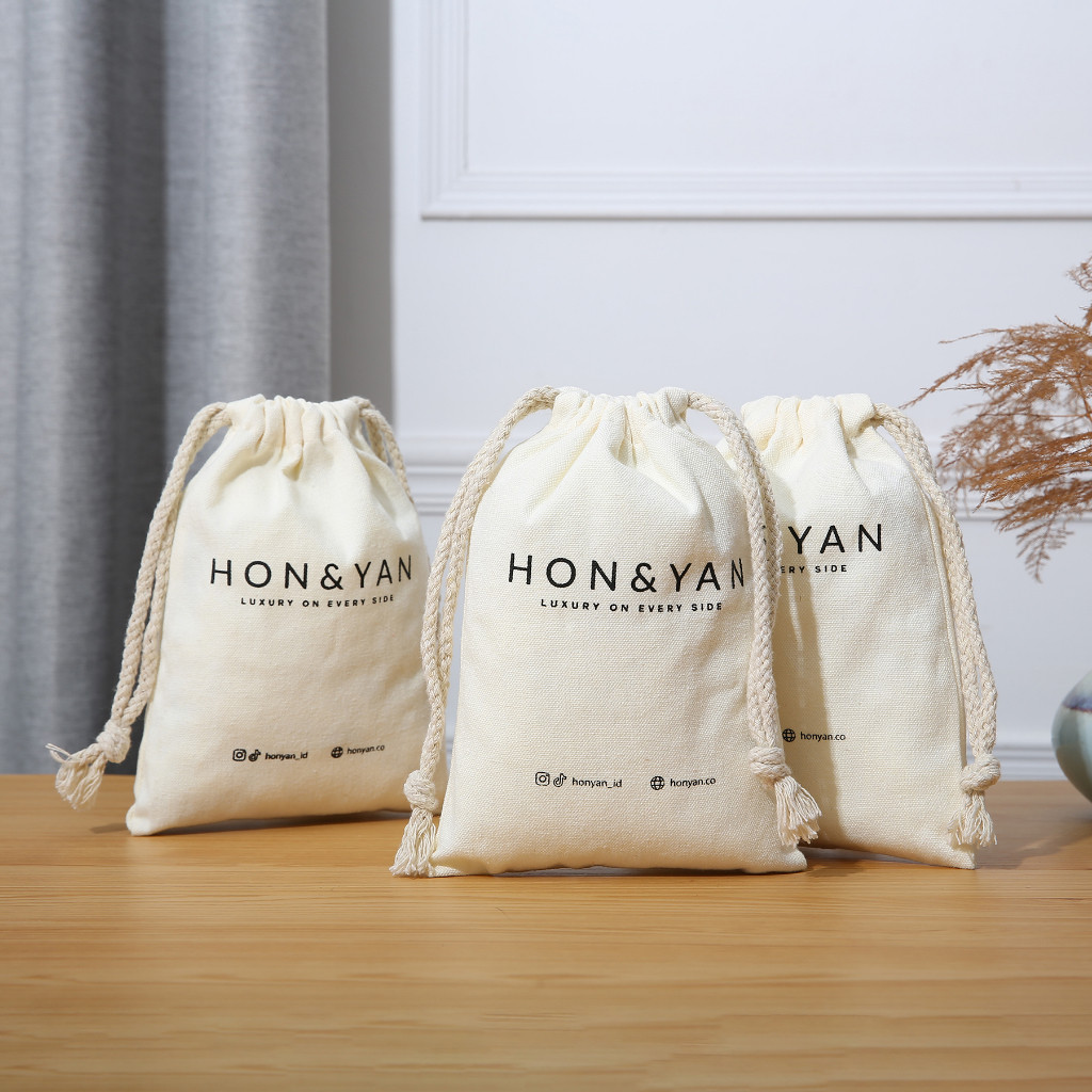 HONYAN Tas Serut Kecil Tas Canvas Branded Ori Kantong Perhiasan Makeup Travel Organizer String Bag