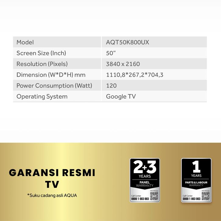 TV AQUA 50 INCH / 50" AQT50K800UX SMART GOOGLE TV 4K UHD HDR 50K800UX