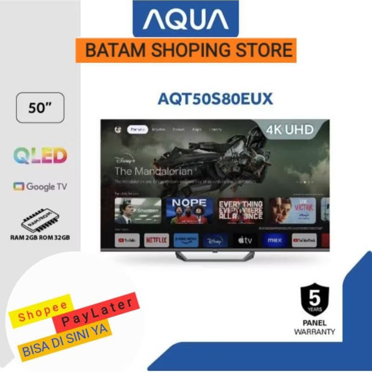 TV AQUA 50 INCH SERIES GOOGLE TV AQT50S80EUX 4K UHD QLED GARANSI RESMI