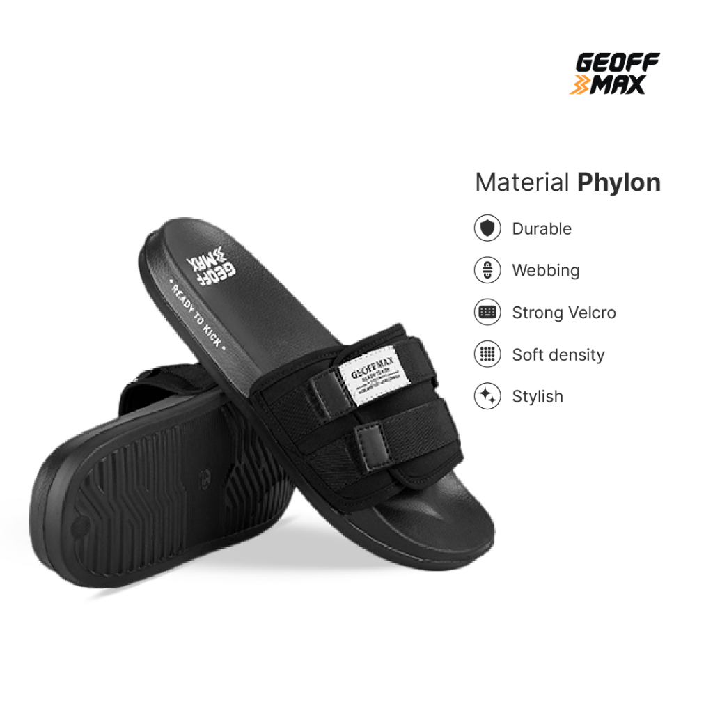 Geoff Max - Freddo Black - Sandal Slop Slipper Hitam | Sandal Unisex Anti Slip