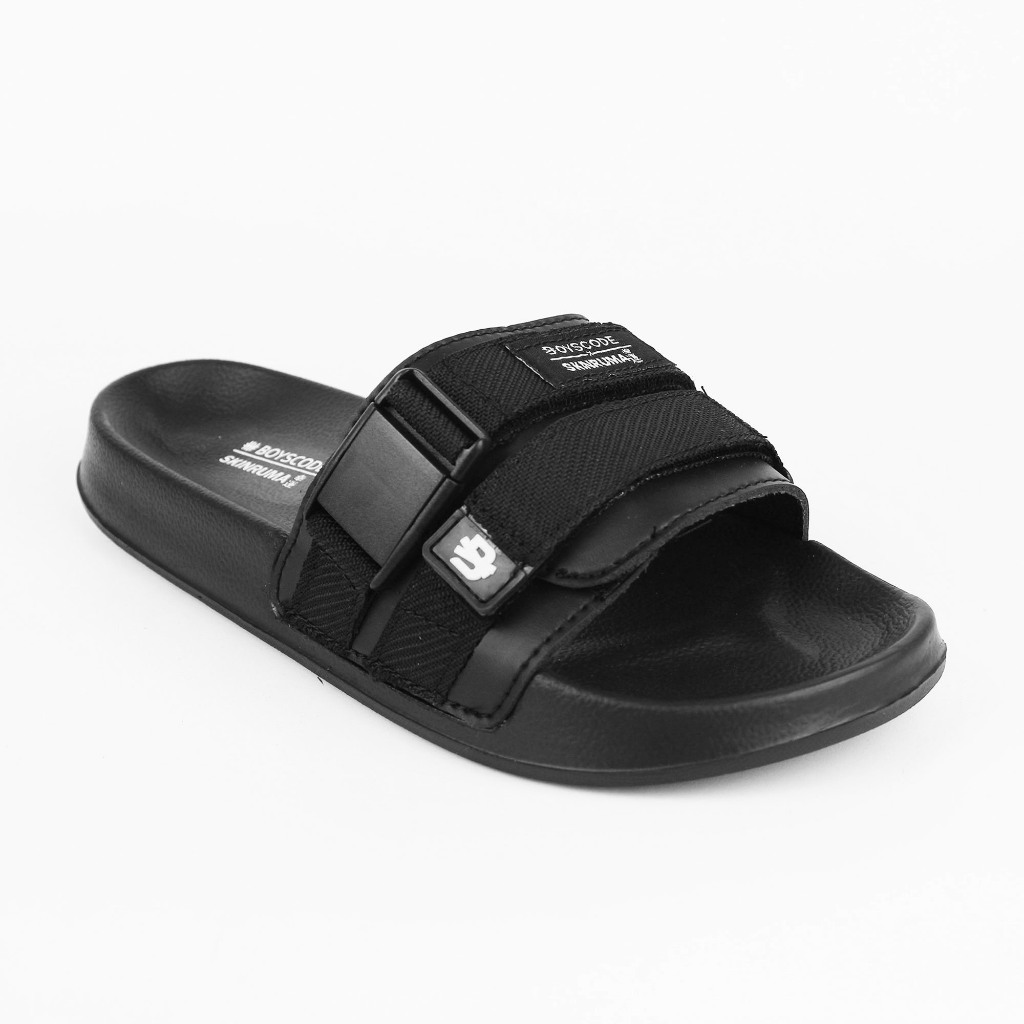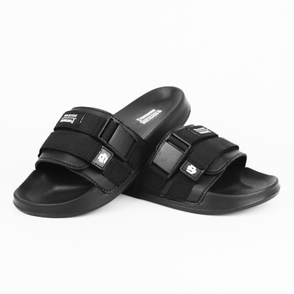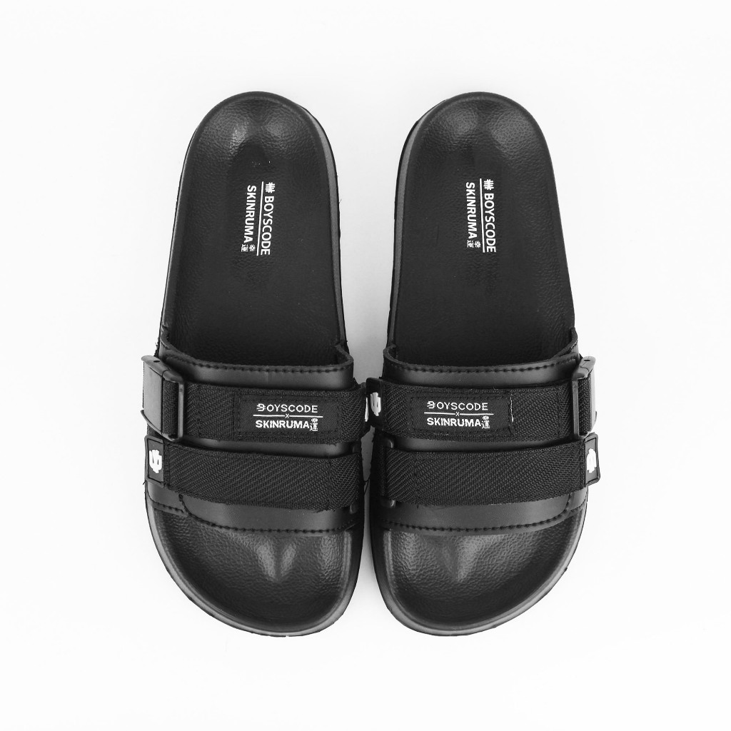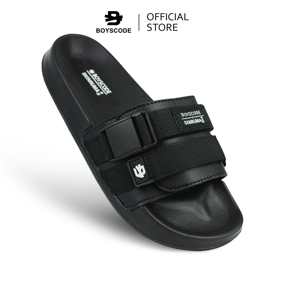 BOYSCODE Sendal Selop Karet Double Strap Distro Pria Wanita Toshio Hitam Fullblack / Slop Pria