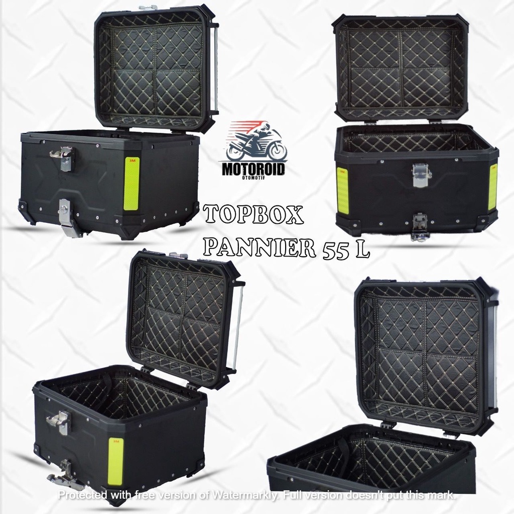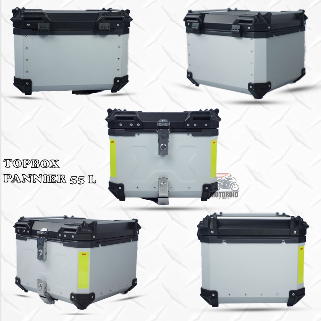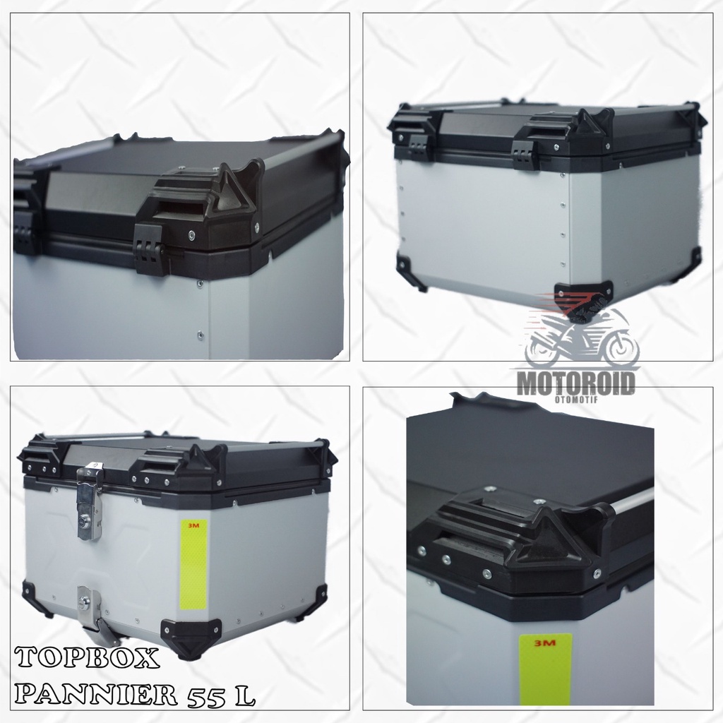 Top box motor pannier alumunium impor 55 liter kunci model x + breket base plate