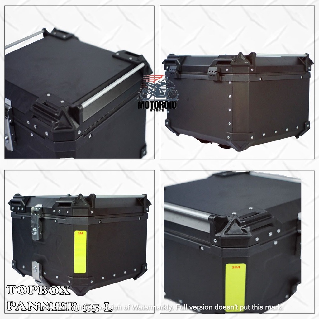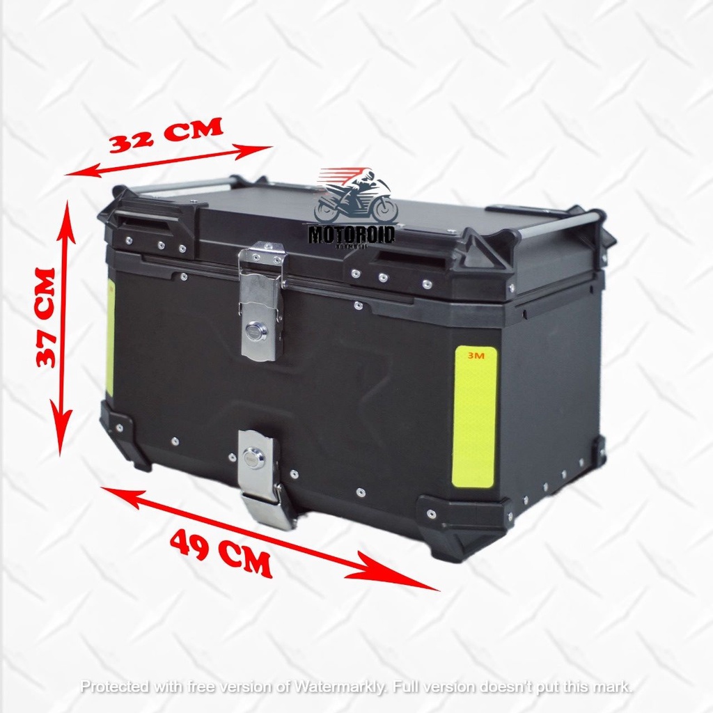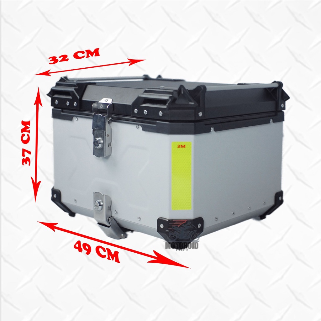 Top box motor pannier alumunium impor 55 liter kunci model x + breket base plate