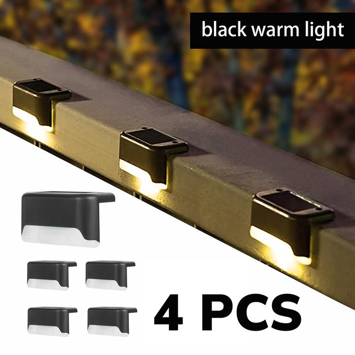 LAMPU LED TANGGA PAGAR OUTDOOR LIGHTNING LAMPU LANTAI TAMAN TENAGA SURYA FITUR SENSOR CAHAYA - Hitam - Cahaya Kuning