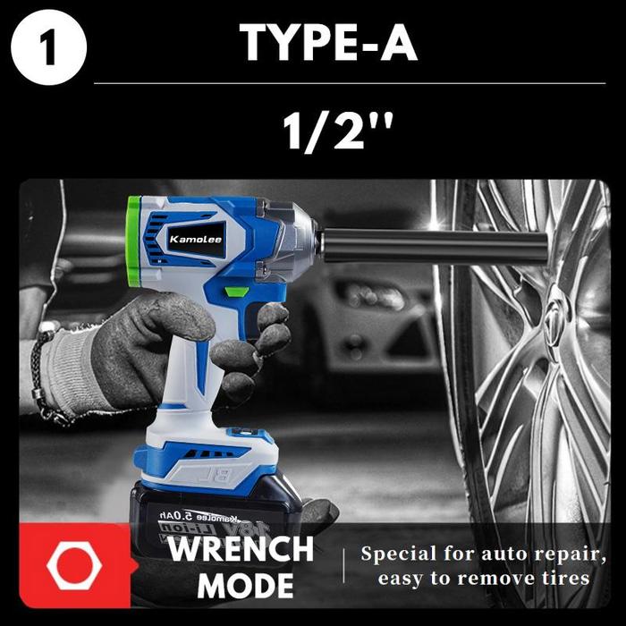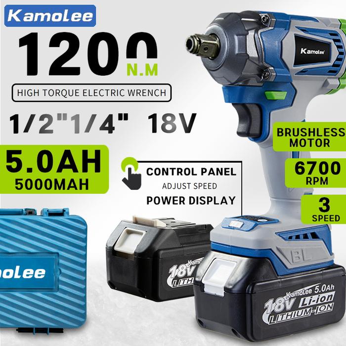 Kamolee 1200N.M Brushless Pelepas Baut Ban Mobil 1/2"1/4" Impact Kunci Pas Elektrik