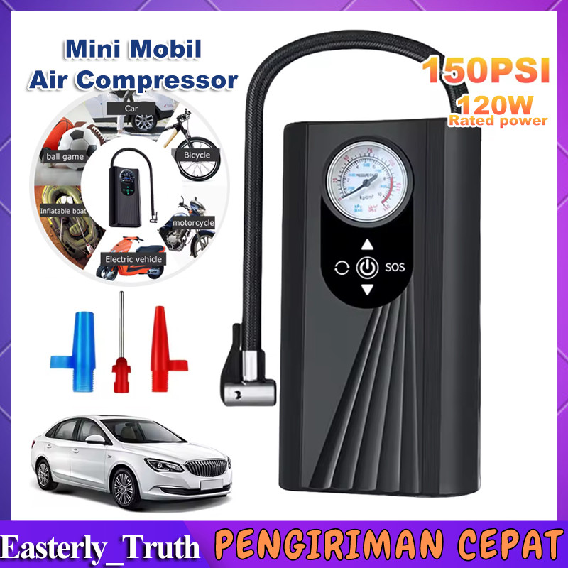(Stok Siap) Pompa Ban Mobil Sepeda Motor Elektrik Cek Tekanan Angin Listrik Car Air Pump Tire Inflator Portabel