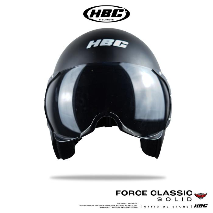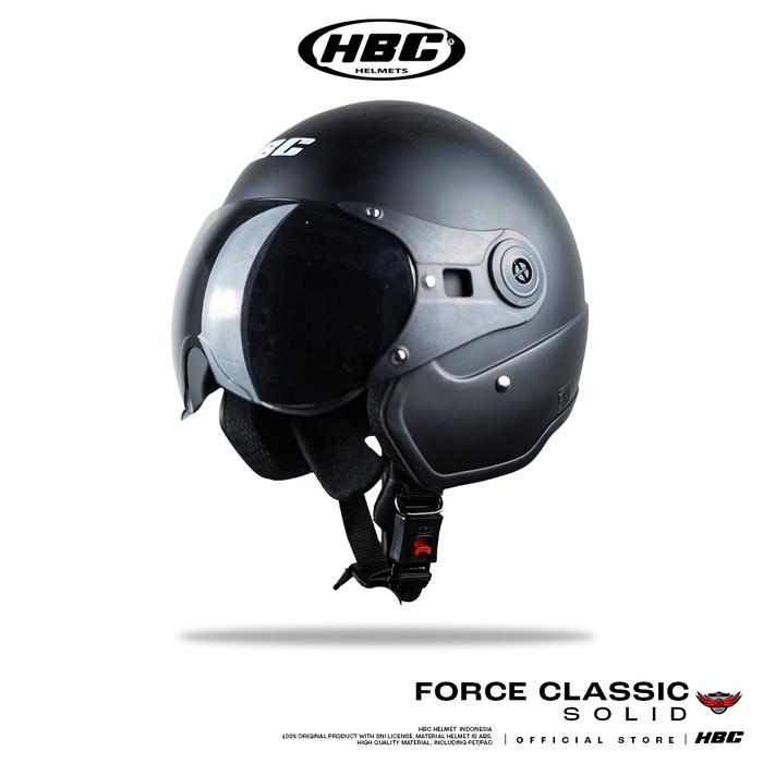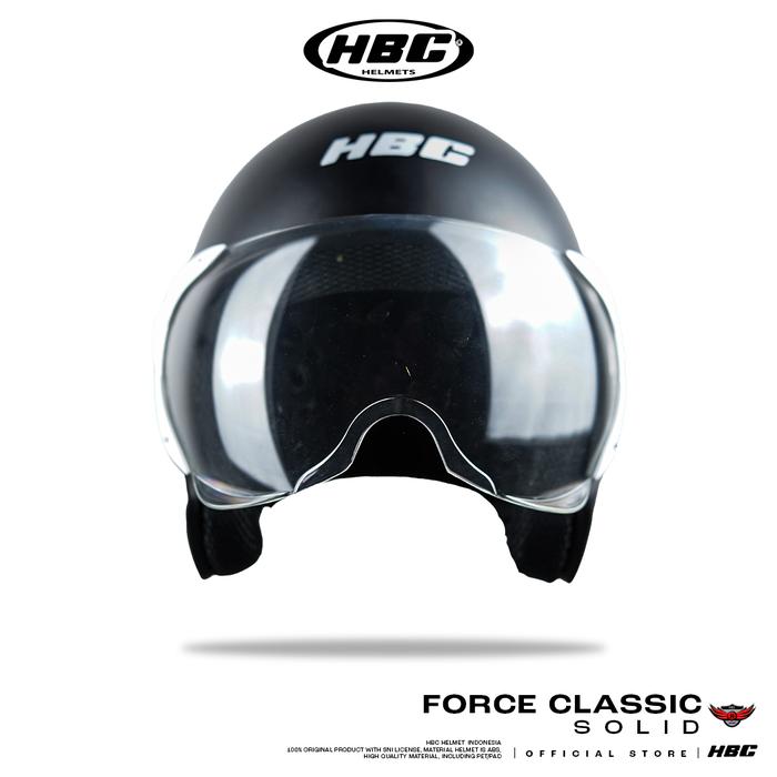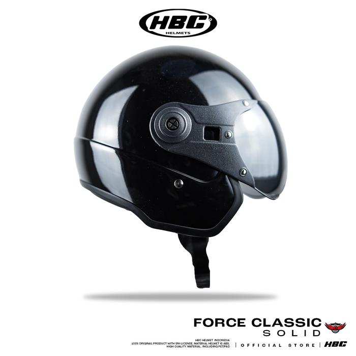 Helm HBC FORCE CLASSICO SOLID Helm Retro Half Face SNI - HITAM DOFF, CLEAR