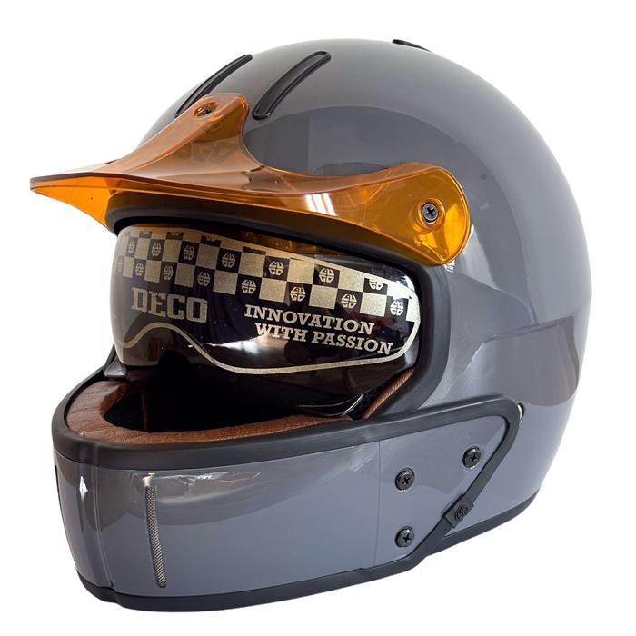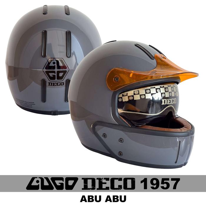 Helm Dewasa Klasik Cakil LUGO Deco 1957 Polos Standar SNI Visor Unik Interior Nyaman - Abu Abu, M