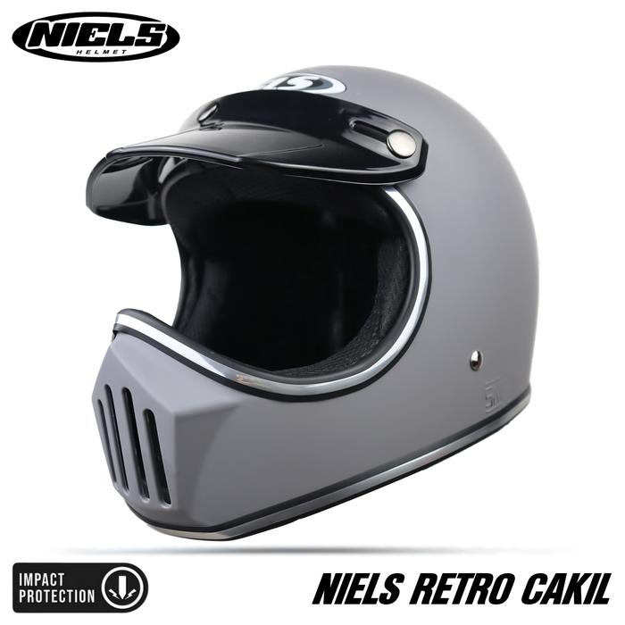 NIELS - Helm Cakil Full Face Retro List Chrome Free Pet SNI Motorcycle