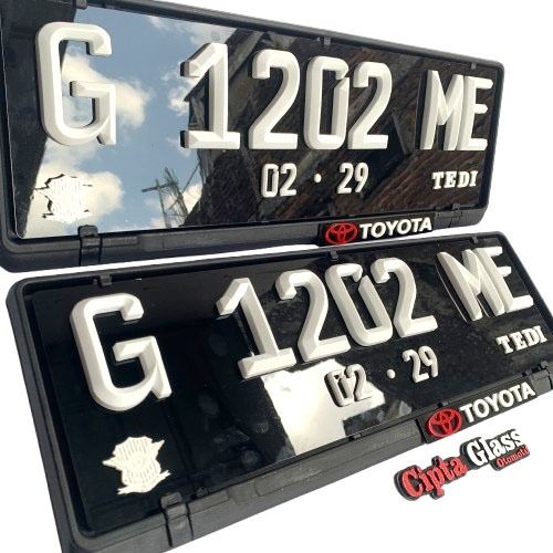 Plat Nomor Mobil Custom Akrilik Timbul FONT BARU FE LANCIP PUTIH Free Cover dengan Label Merk Mobil