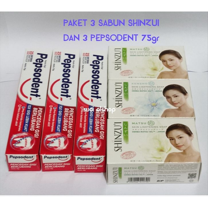 PAKET 3 PCS SABUN SHINZUI 80gr DAN 3 PCS ODOL PEPSODENT 75gr